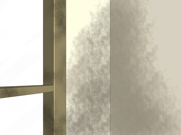 外が寒いと窓に霜が付くので縁にエアブラシのにじみ&ノイズを足して