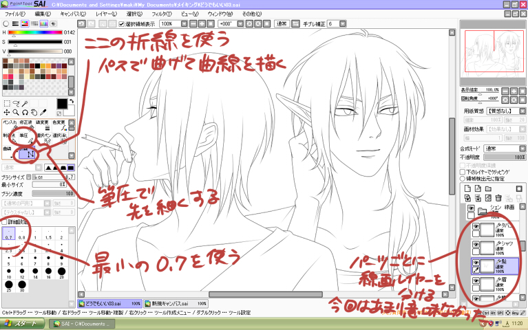よそ様の描き方を見ていると線画のみSAIを使って色彩はフォトショを使う方が多いようですね